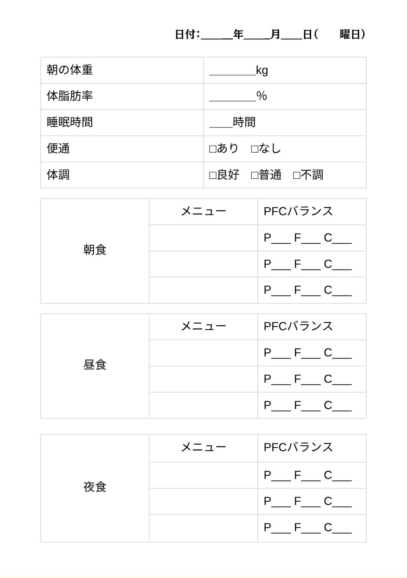 朝の体重、今日の気分、夜の食事。